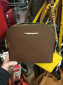 The brown crossbody is by Steve Madden. It comes in several different colors: dark brown (pictured), reddish medium brown, light brown, hunter green and the Steve Madden logo print. This would be a great addition to your collection or as a Christmas gift.